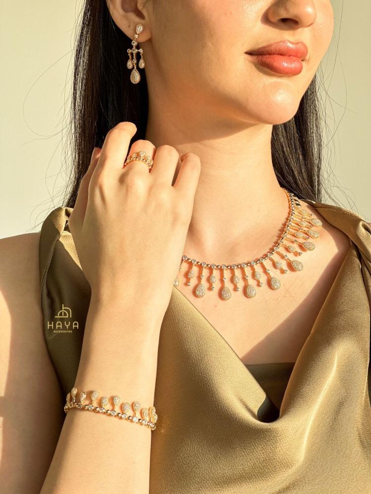 نقدم لك هذا الطقم المختار والرائع كأفضل الاكسسريز النسائية المطلية طلاء فاخرا .. (وبسعر خاص) وبتغليف فاخر مجاني.. لتظهري دائما باطلالة فريدة ومميزة.